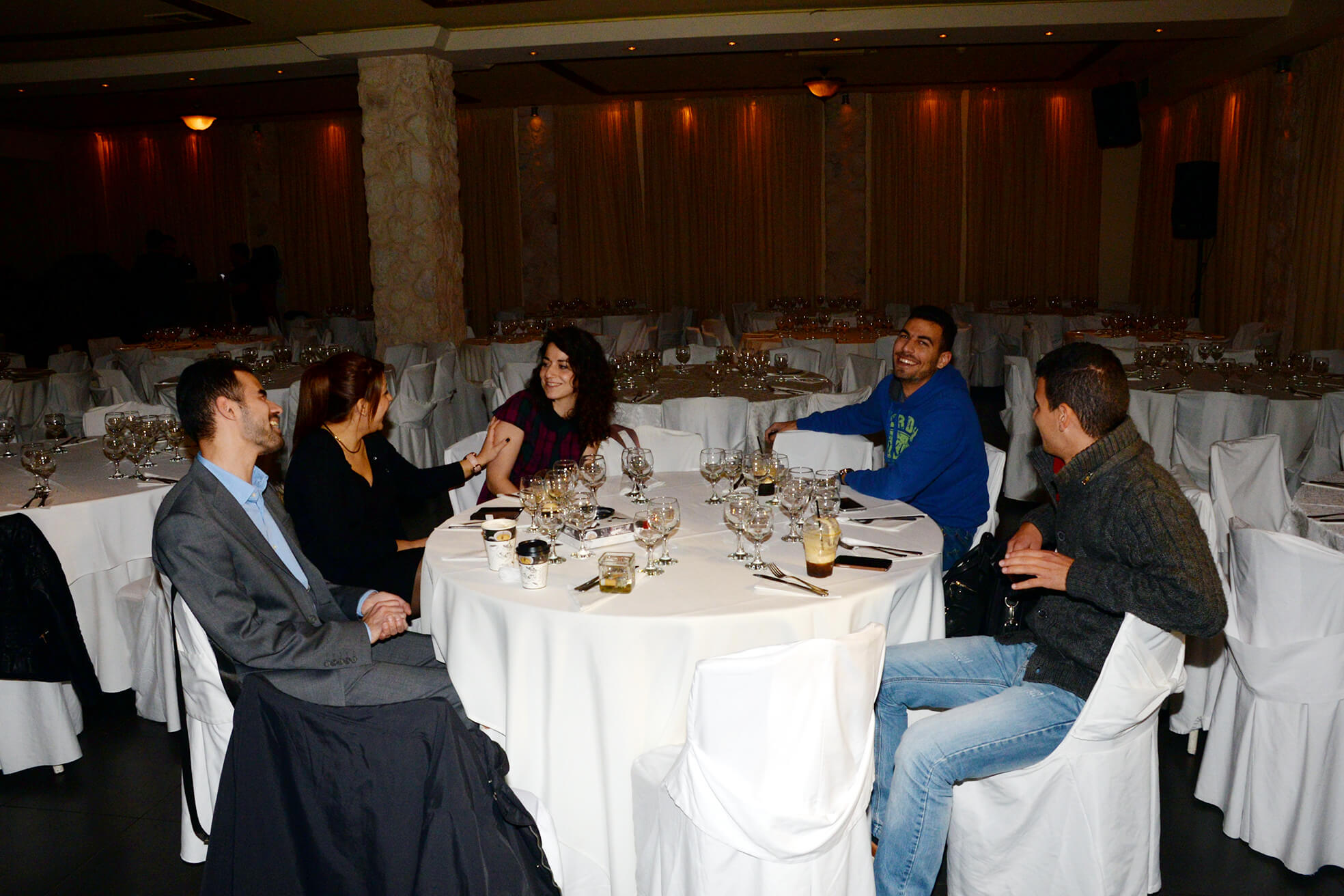 Όσο υπήρχε σκοτάδι ήταν εύκολο να μιλήσουμε με τα υπόλοιπα άτομα του τραπεζιού, δεν υπήρξε καμία “ντροπή” να συζητήσουμε με άτομα που καθόμασταν στο ίδιο τραπέζι και ας μη γνωριζόμασταν….. Όταν όμως άναψαν τα φώτα ο καθένας συνέχισε να μιλάει μόνο με τα άτομα που γνώριζε από πριν…